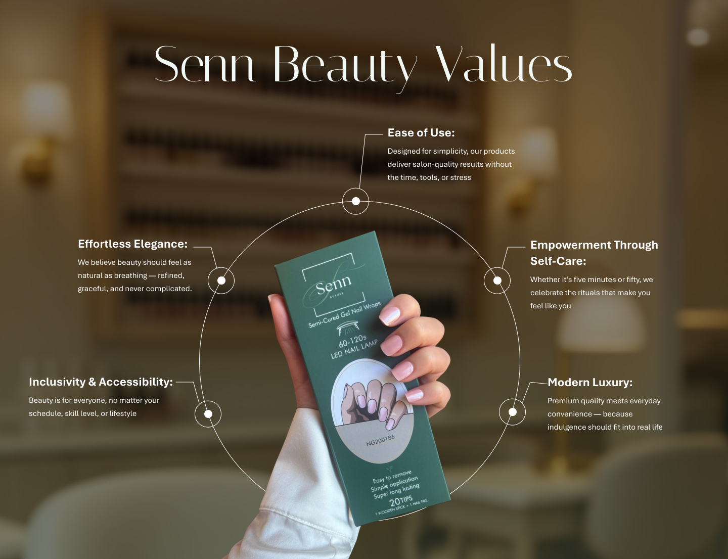 So, she created Senn Beauty: a brand built for busy lives and soft luxuries. A celebration of effortless beauty, designed to slip seamlessly into your day, not take it over.